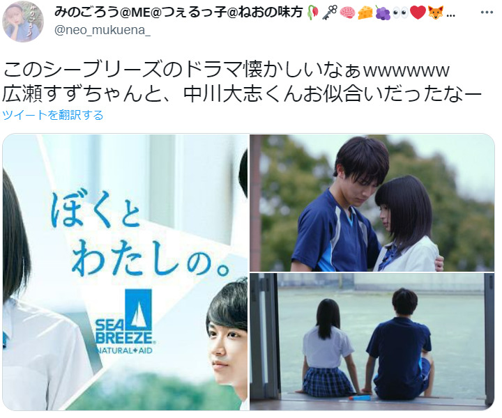 中川大志さんと広瀬すずさんは、2015年から4年間資生堂「シーブリーズ」のCМ、2019年4月放送のNHK朝の連続テレビ小説「なつぞら」で共演しています。