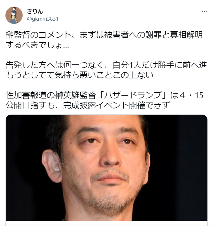 【榊英雄】8人対する性的被害に対する世間の声